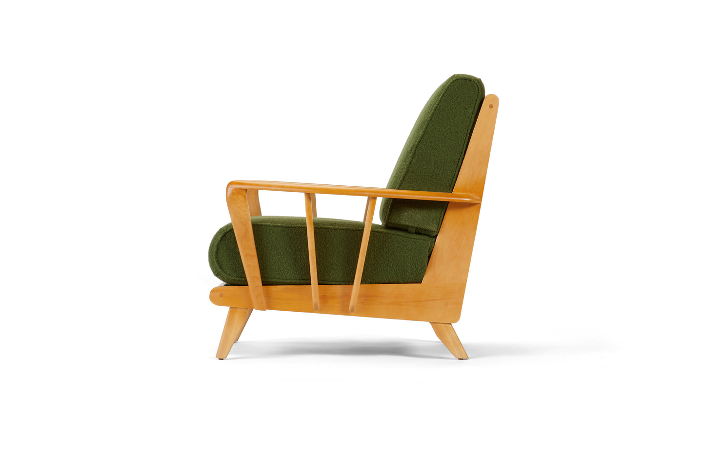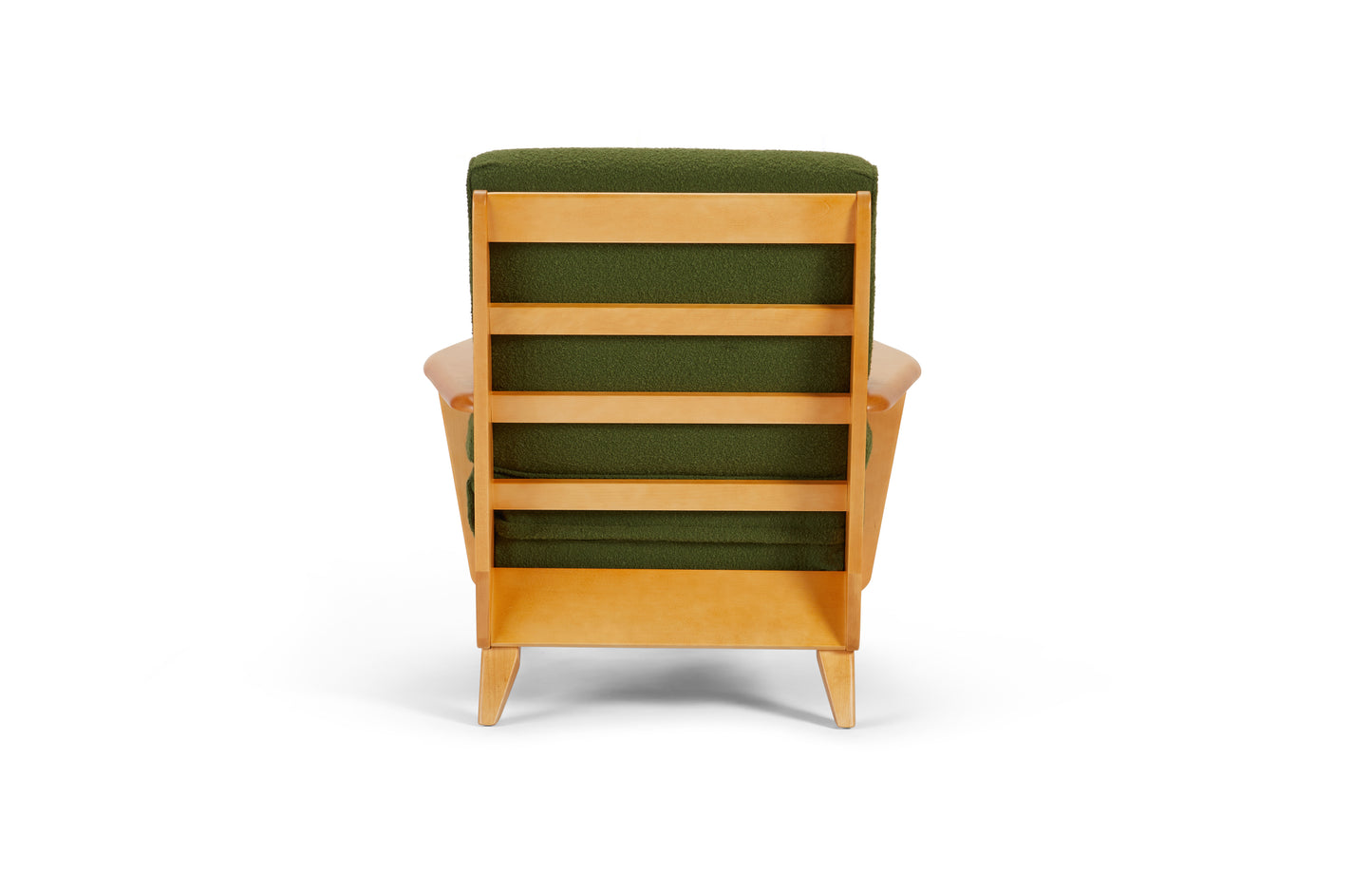 Regular price $3,184The CM 388 C Biscayne Collection Club Chair has long been one of Heywood-Wakefield’s most beloved pieces. Originally part of the Aristrocraft line launched in 1950, it is shown here in our Amber finish, upholstered in Knoll Textiles' Classic Boucle, Rover and with our matching ottoman.  It's a mid-century modern classic and a testament to the perfect blending of form and function, of simplicity and sophistication. The chair makes a distinct retro statement and offers an undeniably luxurious place to sit.