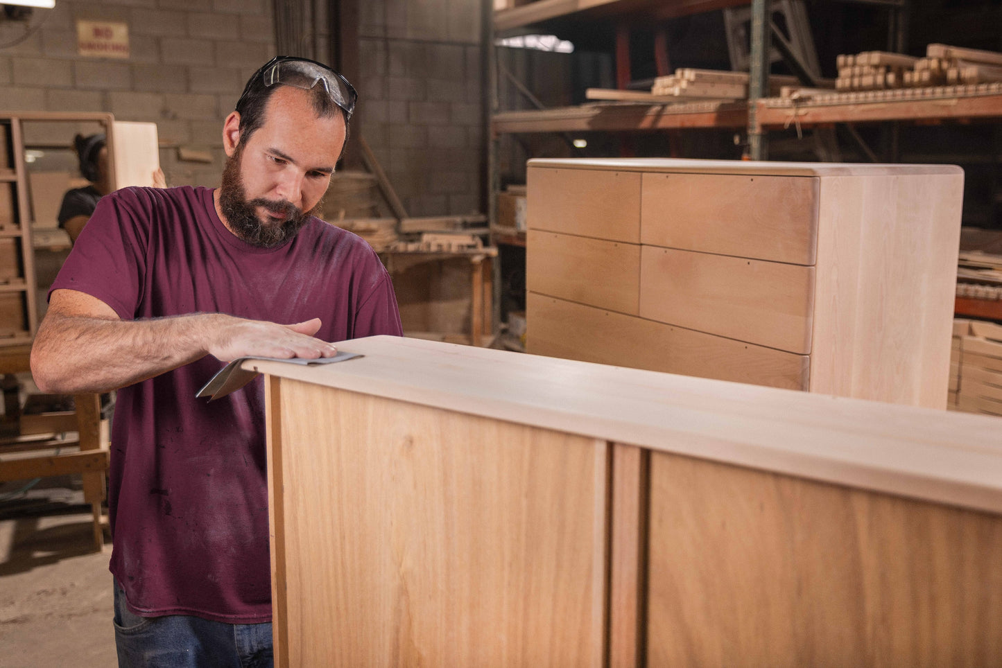 Our dressers and chests use floating frame construction and all our drawers use English and French dovetails. These techniques help to prevent binding and warping as the wood naturally expands and contracts.
