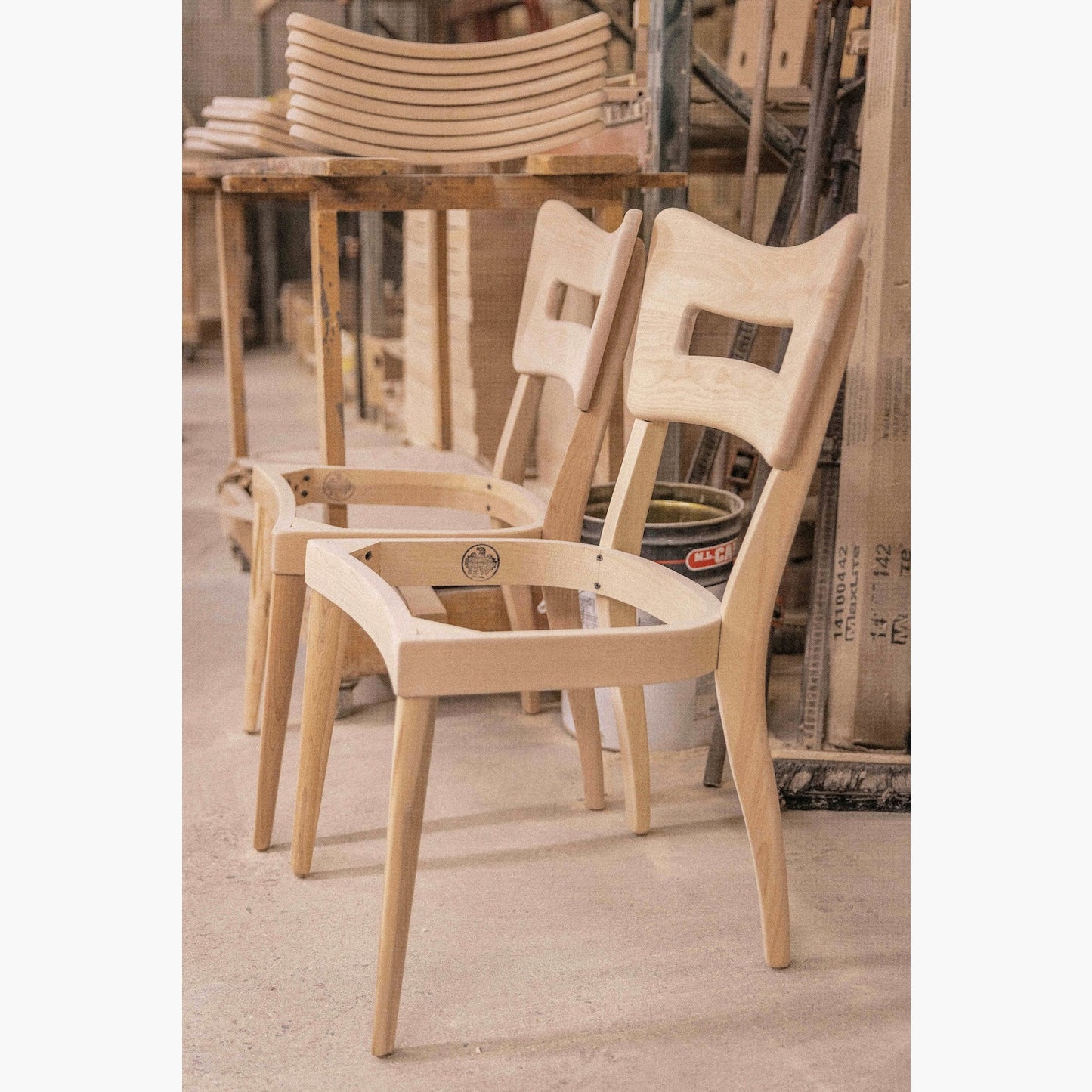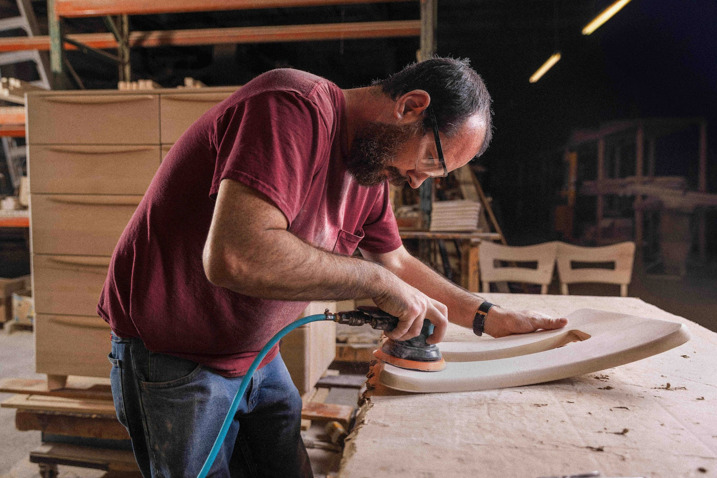 We use steam bending extensively to achieve the biomorphic curves of our designs while maintaining the structural integrity of long uninterupted wood grains. We work with Sawyer Bentwood, a Vermont specialist in steam bending, that has served the furniture industry since 1801.