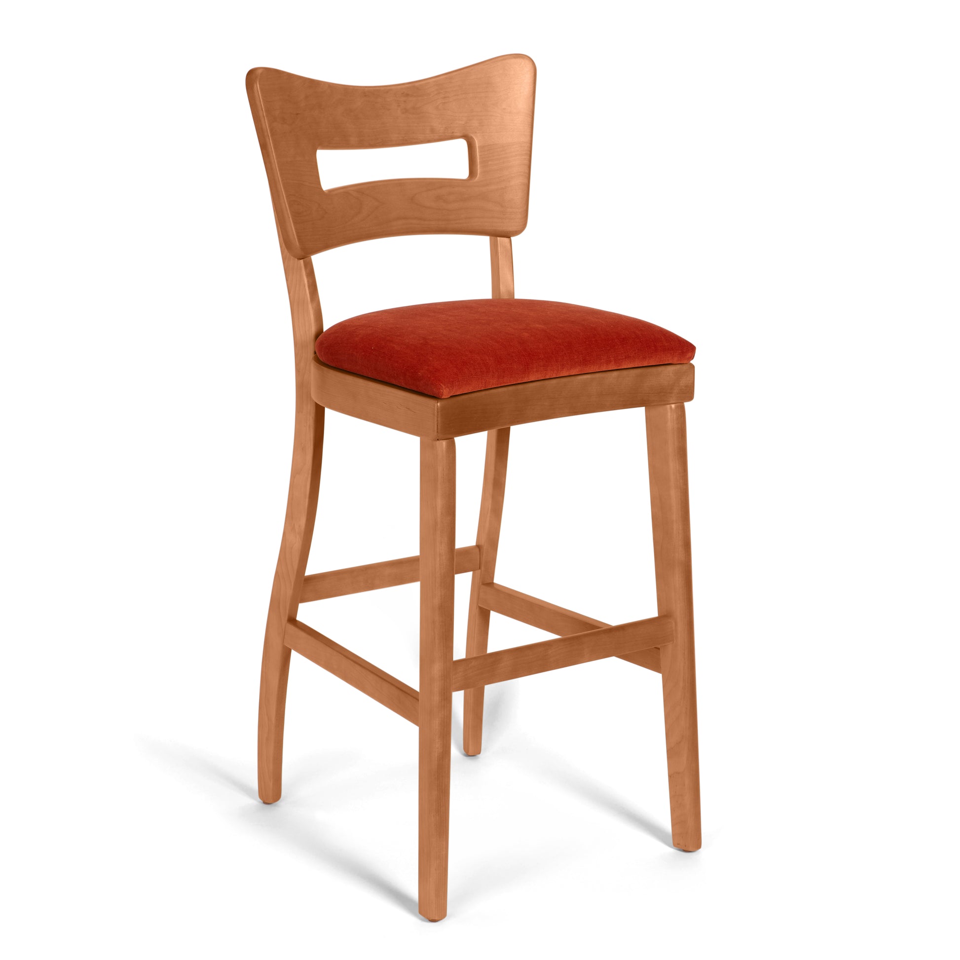 The iconic M 154 A Dining Arm Chair is perhaps the most recognizable Heywood-Wakefield chair. In response to many requests, we’ve added this great M 154 A-HS Bar/Counter Stool to our line-up. The Bar Stool (pictured here) measures 30 inches from the floor to the seating area while the Counter Stool measures 24 inches. Both feature the same instantly-recognizable open backrest and undulating back leg (a one-piece solid-wood upright) as the M 154 A chair. Shown here in our Amber finish and Nile Blue fabric, the entire stool is solid 100% North American birch.