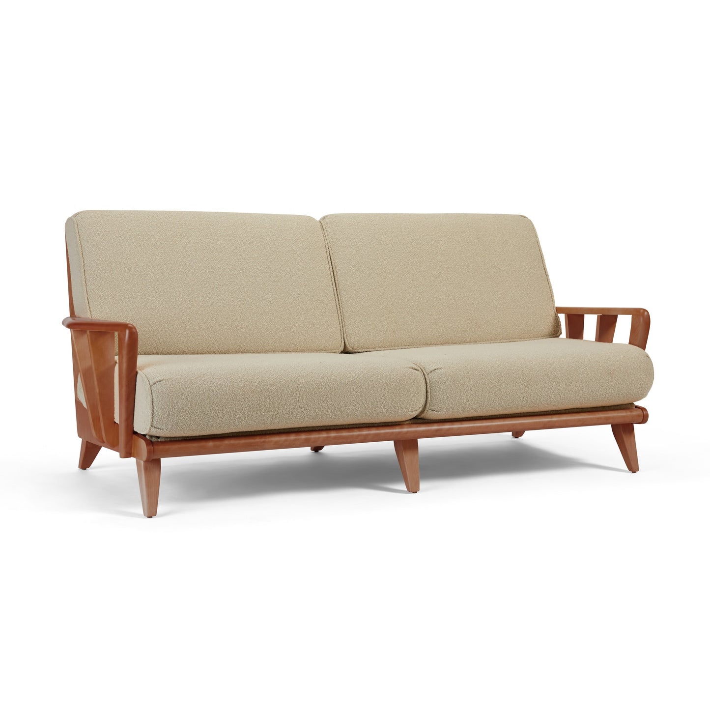 Regular price $5,216The Biscayne Davenport, shown here in our Amber finish and upholstered in Knoll Textiles Classic Boucle series Neutral color, was originally part of the Aristrocraft line, launched in 1950. It is built from 100% northern yellow birch wood and hand-assembled in our Massachusetts factory.