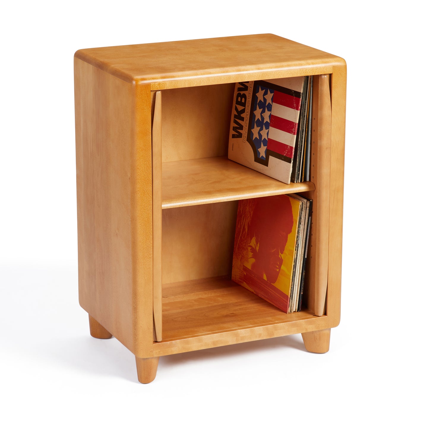 Customize the interior space with the two adjustable shelves. One shelf in the middle position provides two spaces ideally sized for a classic use for this mid-century modern favorite: storing vinyl records.